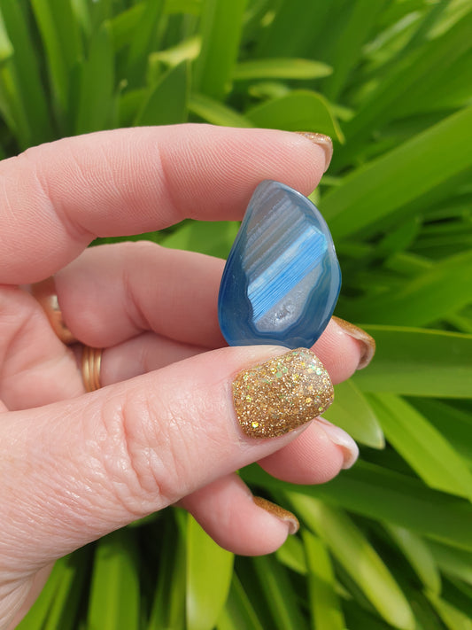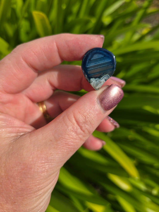 Agate is a grounding stone that promotes emotional, physical, and intellectual balance. It assists in centering and stabilizing physical energy while also fostering self-confidence and self-reflection. This stone highlights any ailments that may be affecting overall well-being. Additionally, it enhances concentration and encourages individuals to express their true feelings. Agate is also beneficial in overcoming negativity and bitterness in the heart.