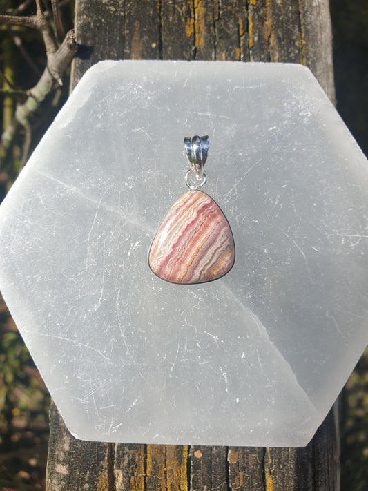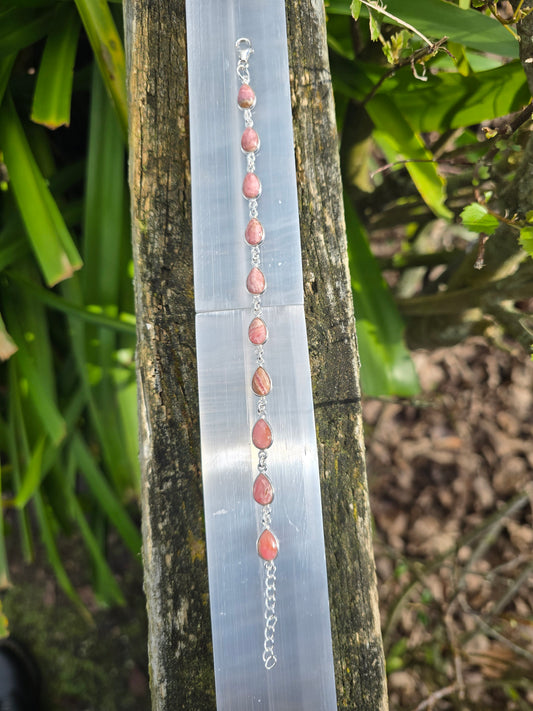 Rhodochrosite Teardrop | Polished Sterling Silver Adjustable Bracelet A