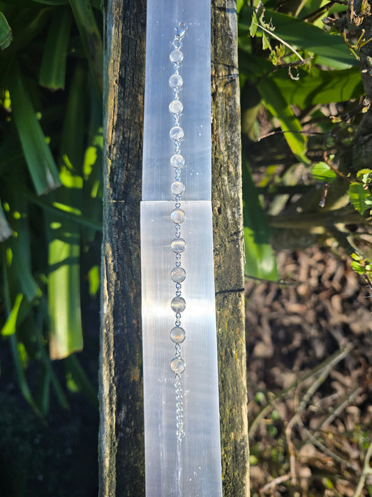 Rainbow Moonstone Round | Polished Sterling Silver Adjustable Bracelet F