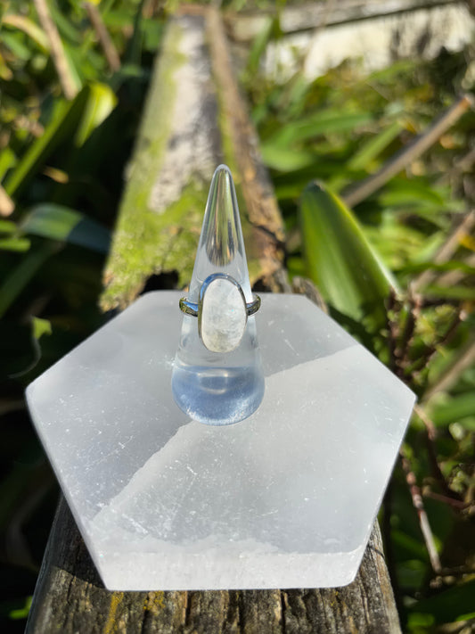 Rainbow Moonstone | Rose Cut Sterling Silver Adjustable Ring A