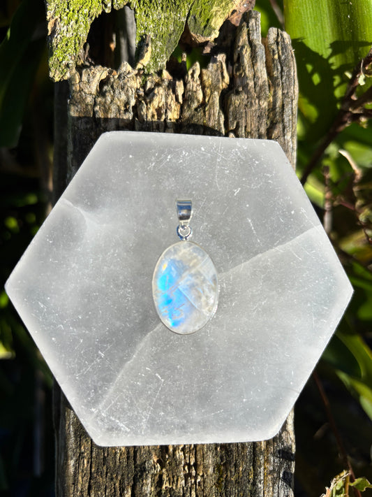 Rainbow Moonstone | Polished Sterling Silver Pendant D