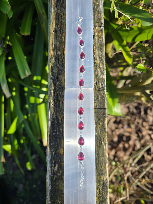 Garnet Teardrop | Polished Sterling Silver Adjustable Bracelet B