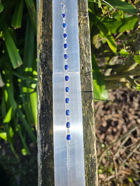 Lapis Lazuli | Rose Cut Sterling Silver Adjustable Bracelet B