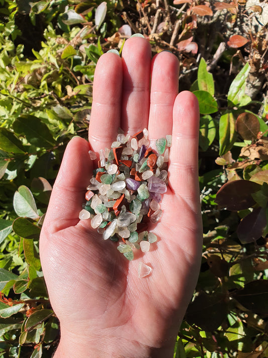 Crystal Chip Bags 100g. Perfect for crafting, candle making, crystal gridding, home decor & more, the possibilities are endless.