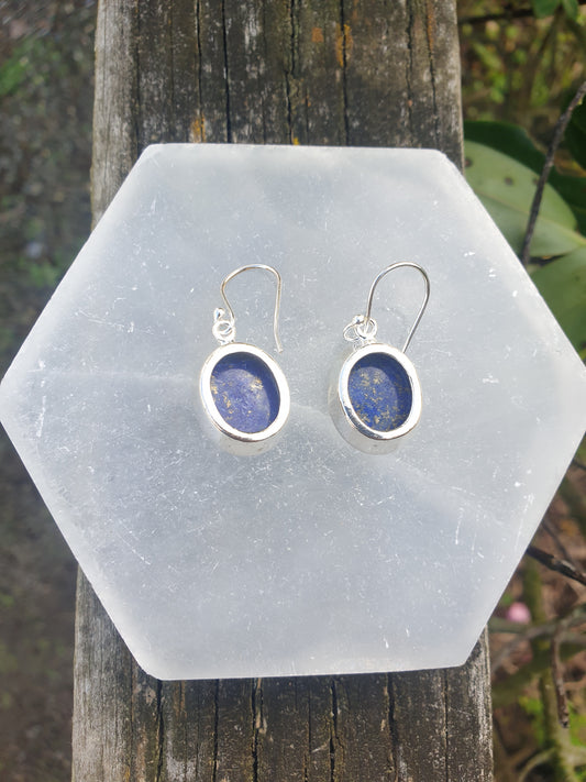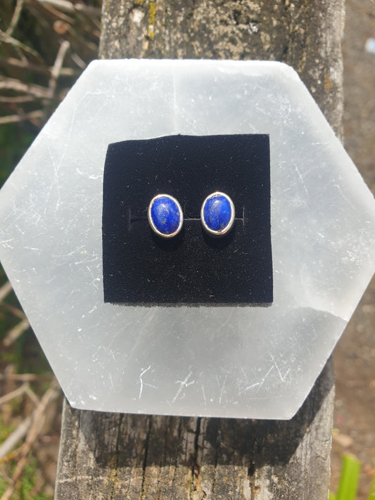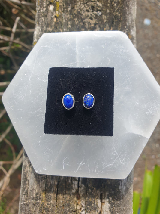 Lapis Lazuli | Polished Sterling Silver Stud Oval Earrings 8mm