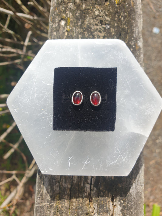 Garnet | Polished Sterling Silver Stud Earrings Oval 8mm