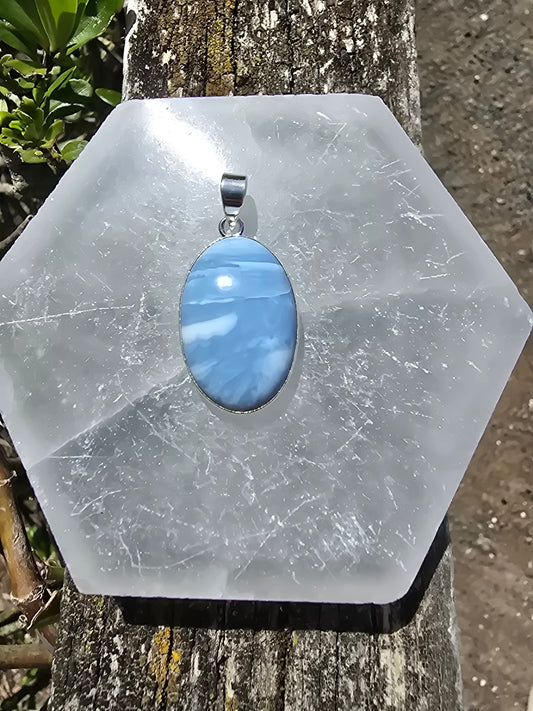 Blue Lace Agate | Polished Sterling Silver Pendant D