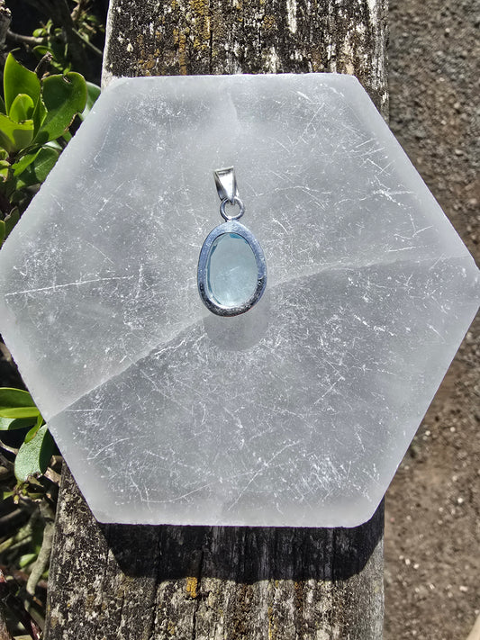 Blue Topaz | Rose Cut Sterling Silver Pendant H