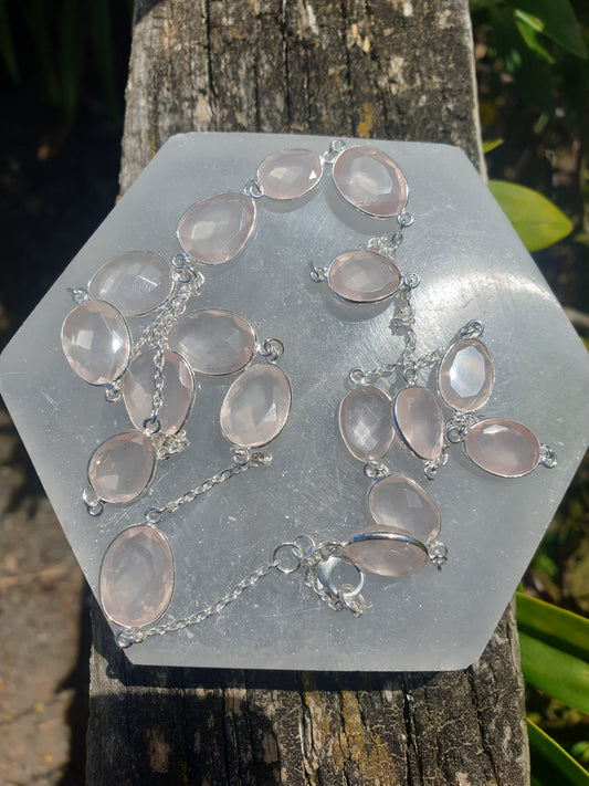 Rose Quartz | Rose Cut Sterling Silver Necklace 100 cm