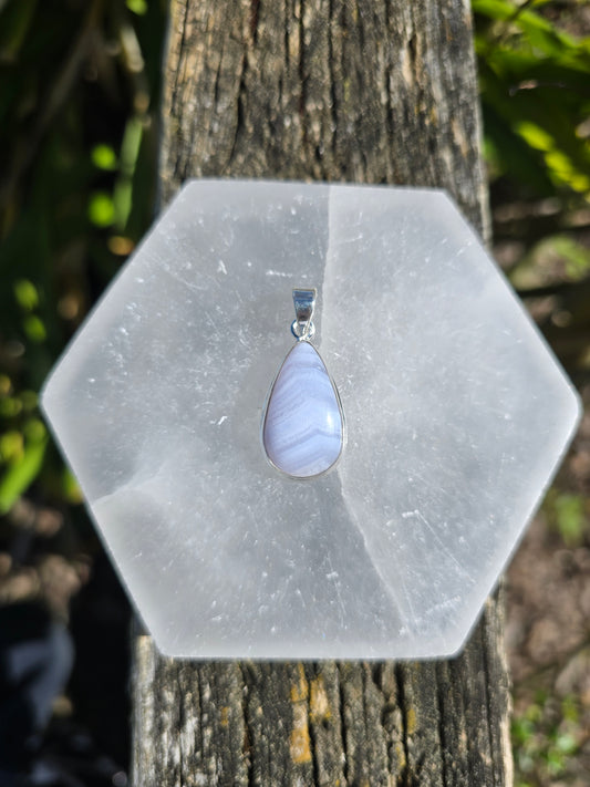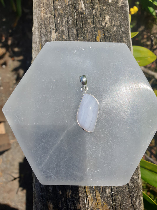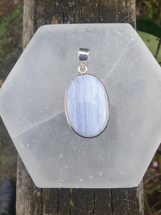 Blue Lace Agate | Polished Sterling Silver Pendant D