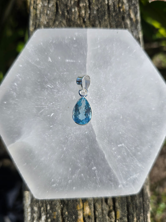 Blue Topaz | Faceted Sterling Silver Pendant B