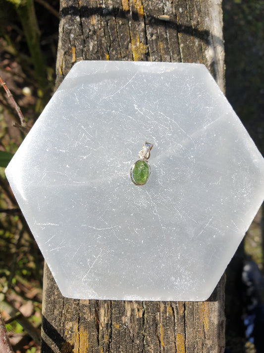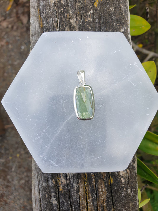 Green Kyanite | Rose Cut Sterling Silver Pendant A