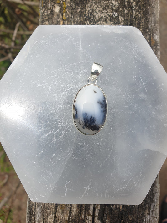 Dendritic Agate | Polished Sterling Silver Pendant A
