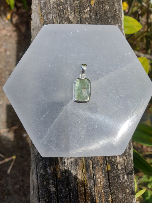 Green Kyanite | Rose Cut Sterling Silver Pendant B
