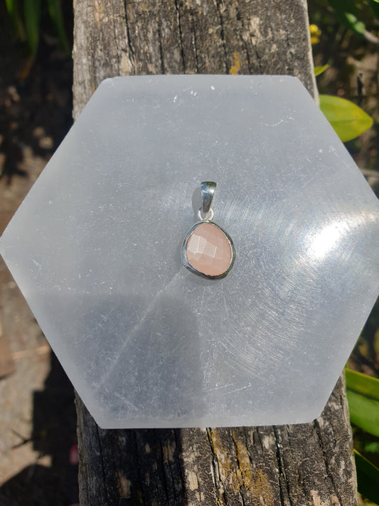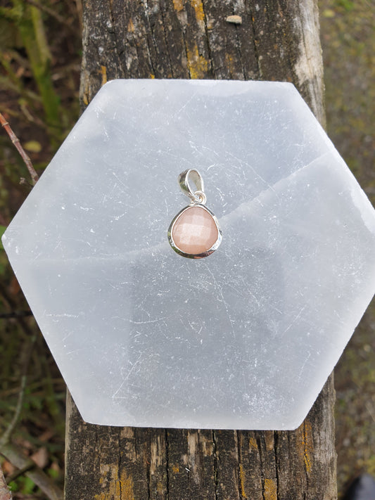 Peach Moonstone | Rose Cut Sterling Silver Pendant H