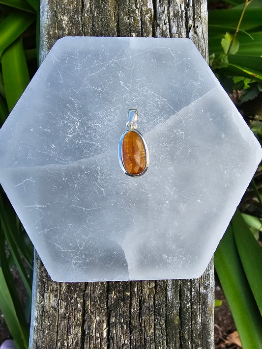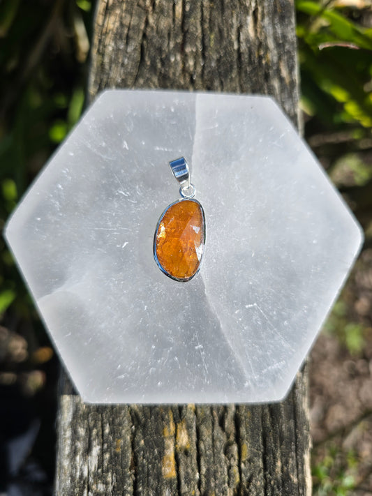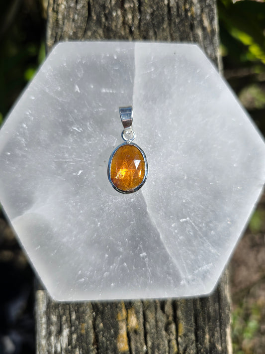 Orange Kyanite | Rose Cut Sterling Silver Pendant B