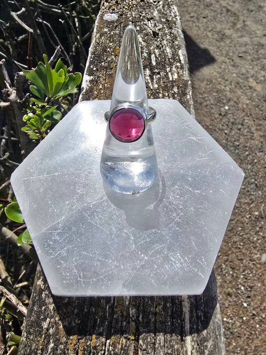Pink Tourmaline | Rose Cut Sterling Silver Adjustable Ring A