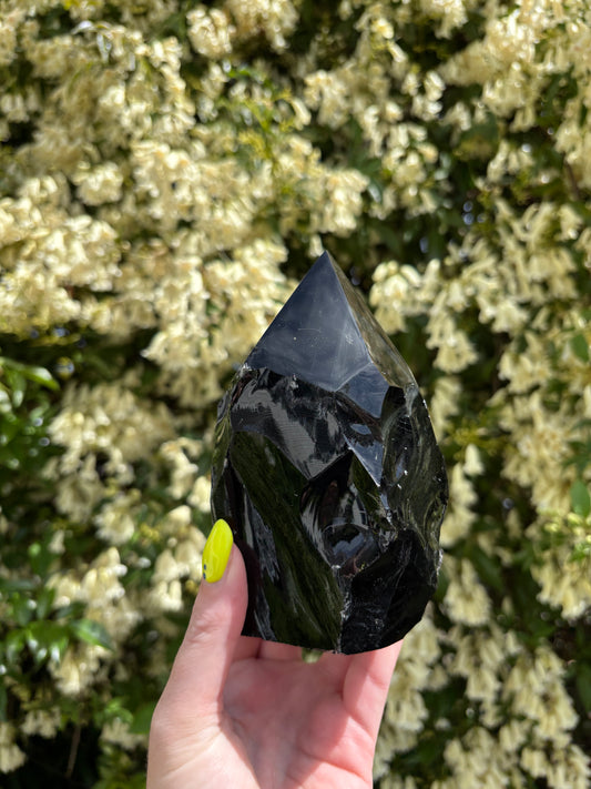 Sold outBlack Obsidian Semi Polished Point A