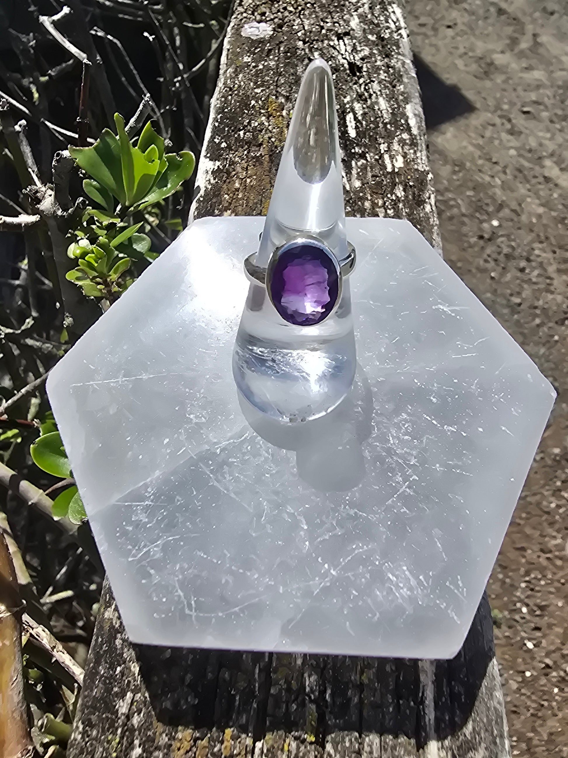 Amethyst | Faceted Sterling Silver Adjustable Ring C