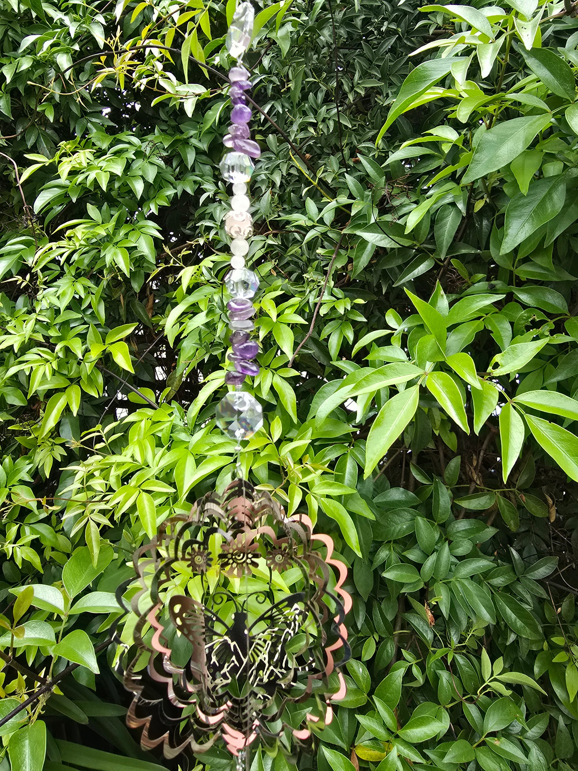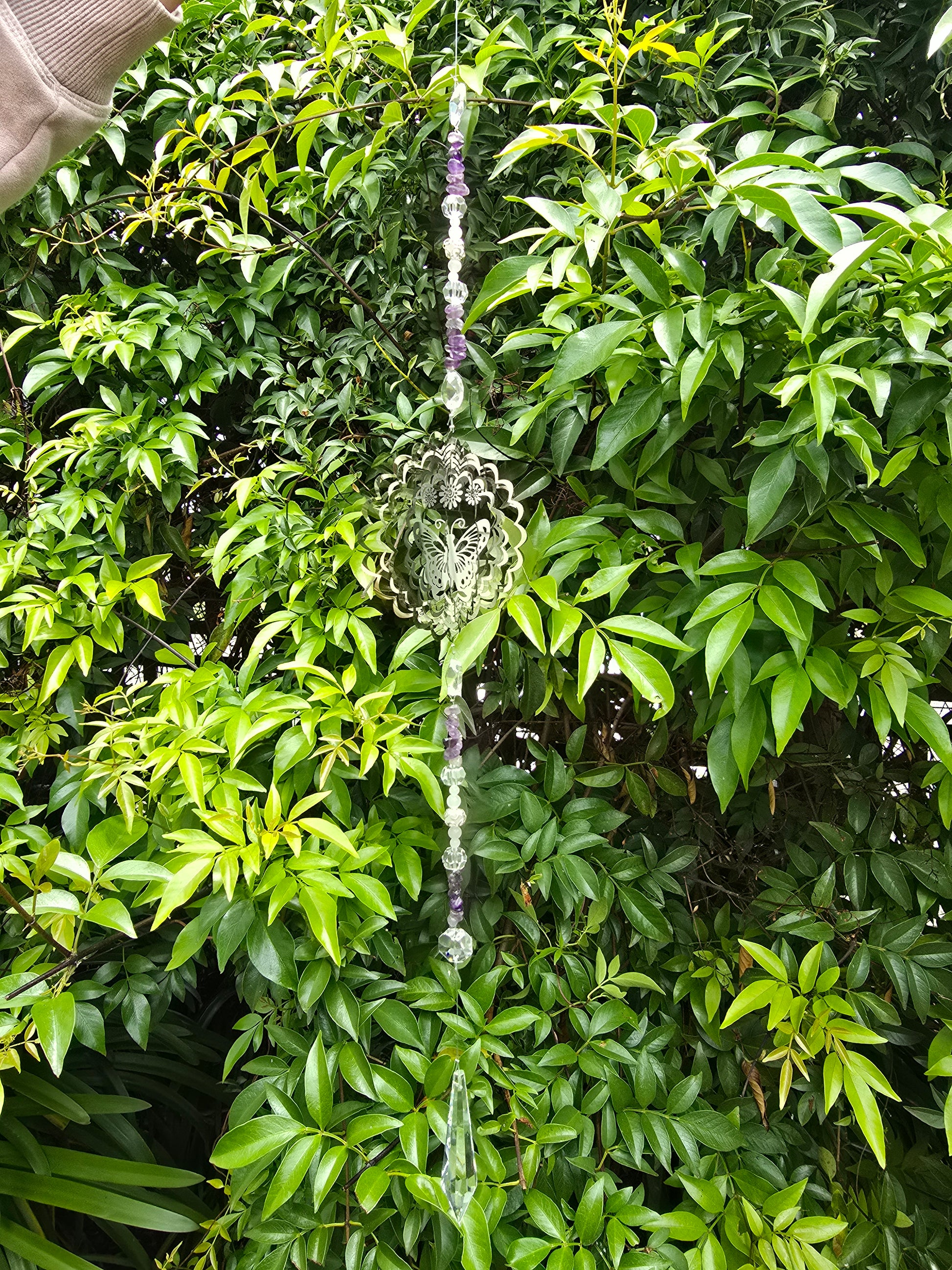 Point Shaped Prism with Crystal Beads & Round Metal Butterfly Spinner