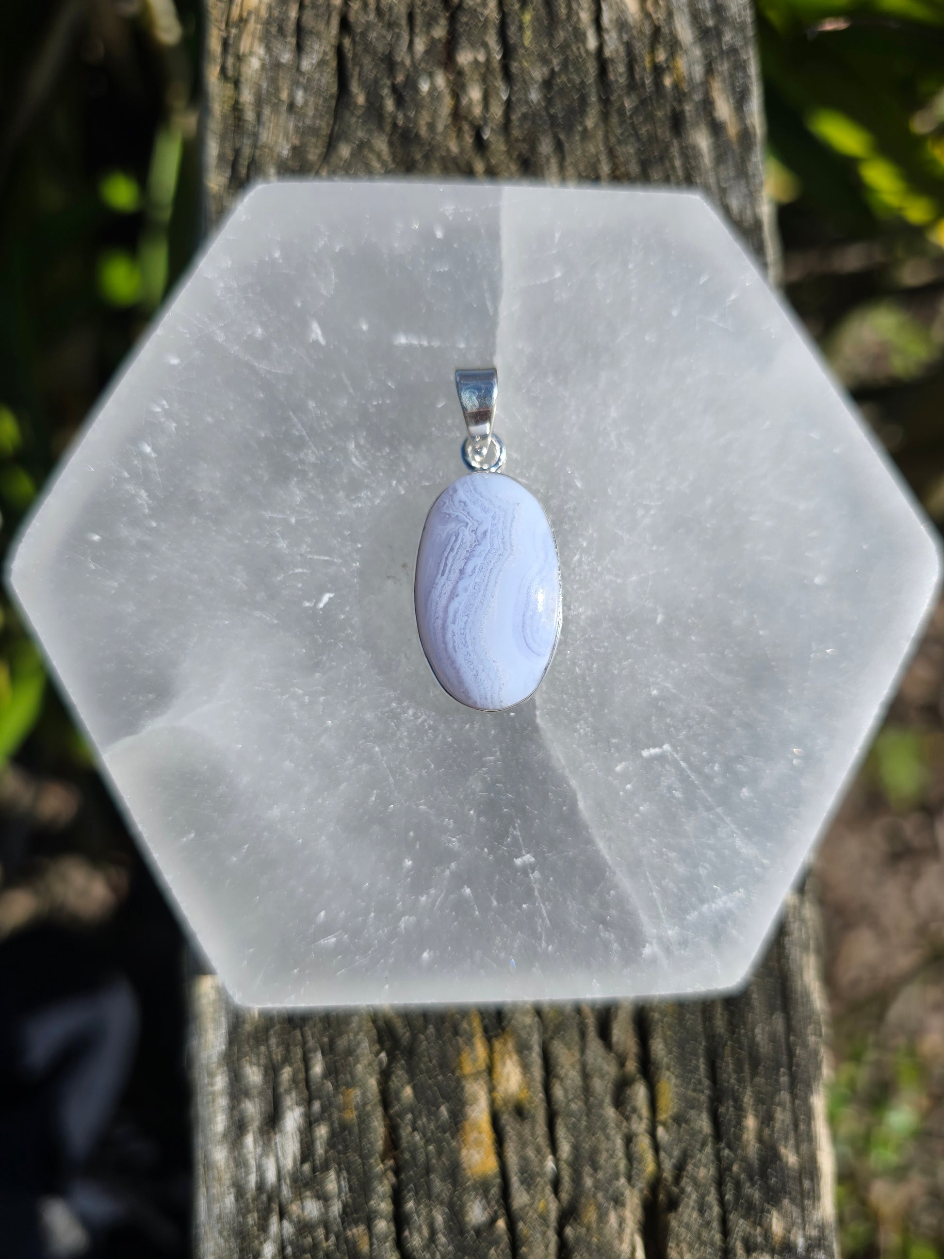 Blue Lace Agate | Polished Sterling Silver Pendant C