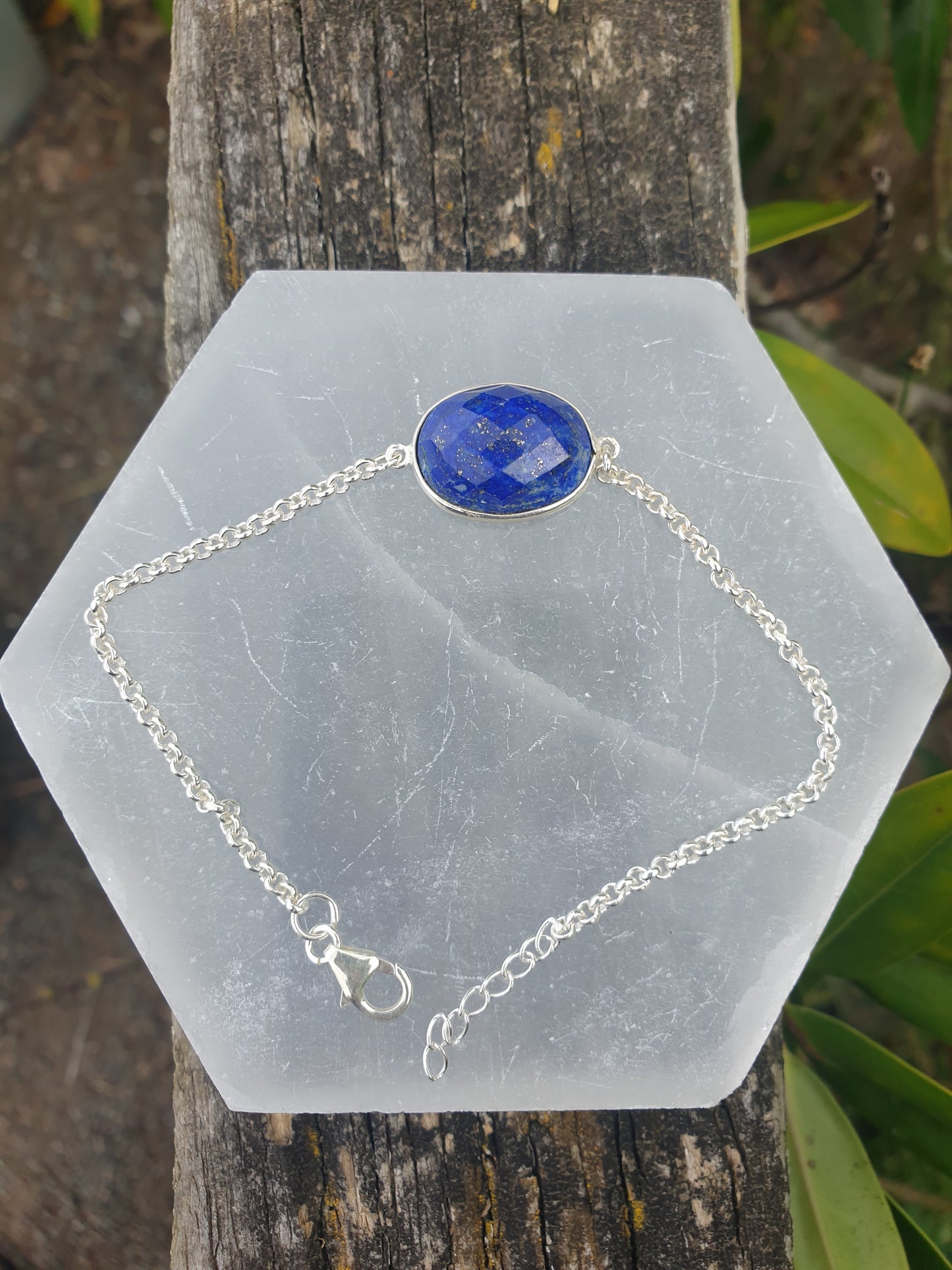 Lapis Lazuli | Rose Cut Adjustable Sterling Silver Bracelet A