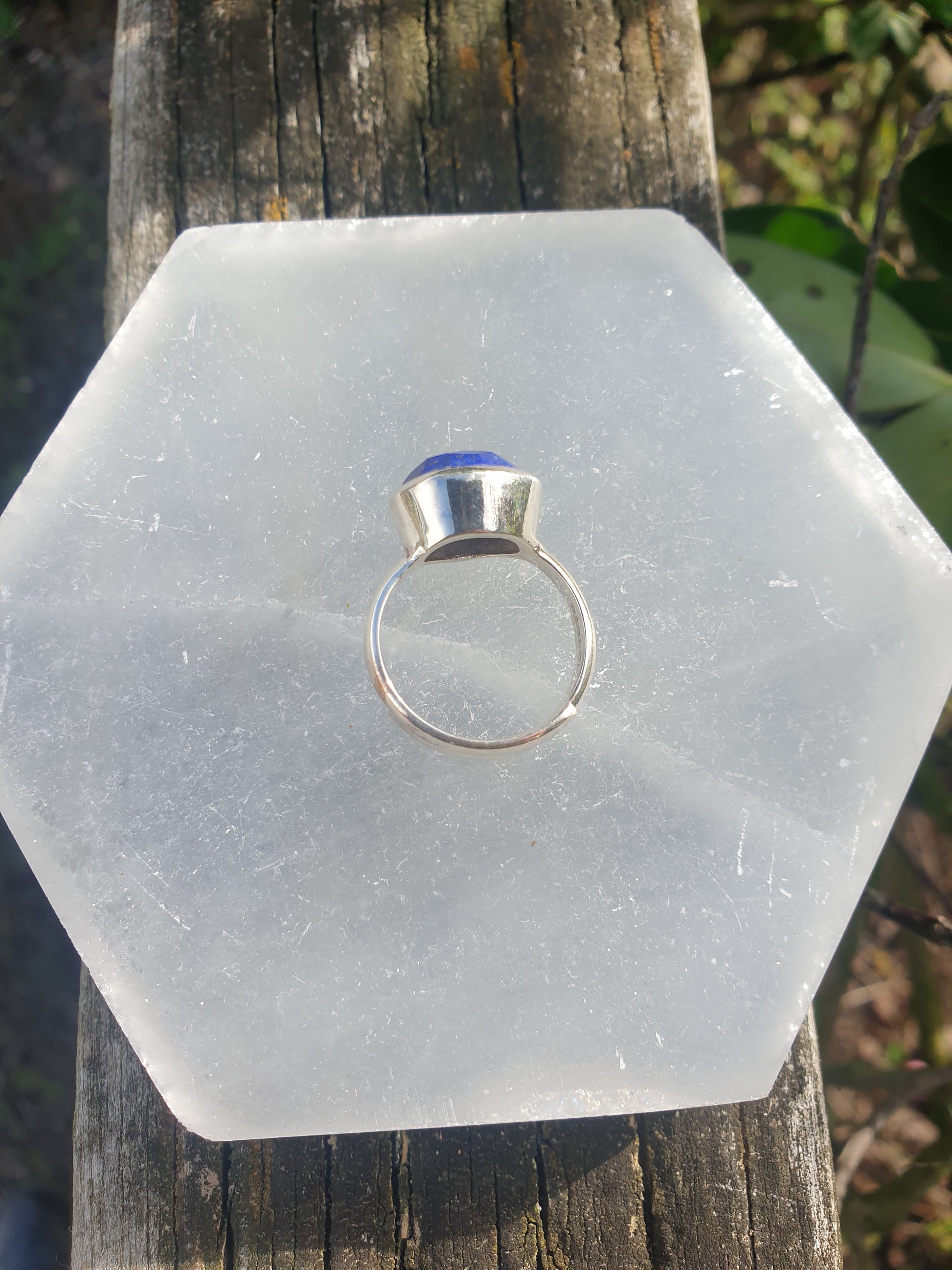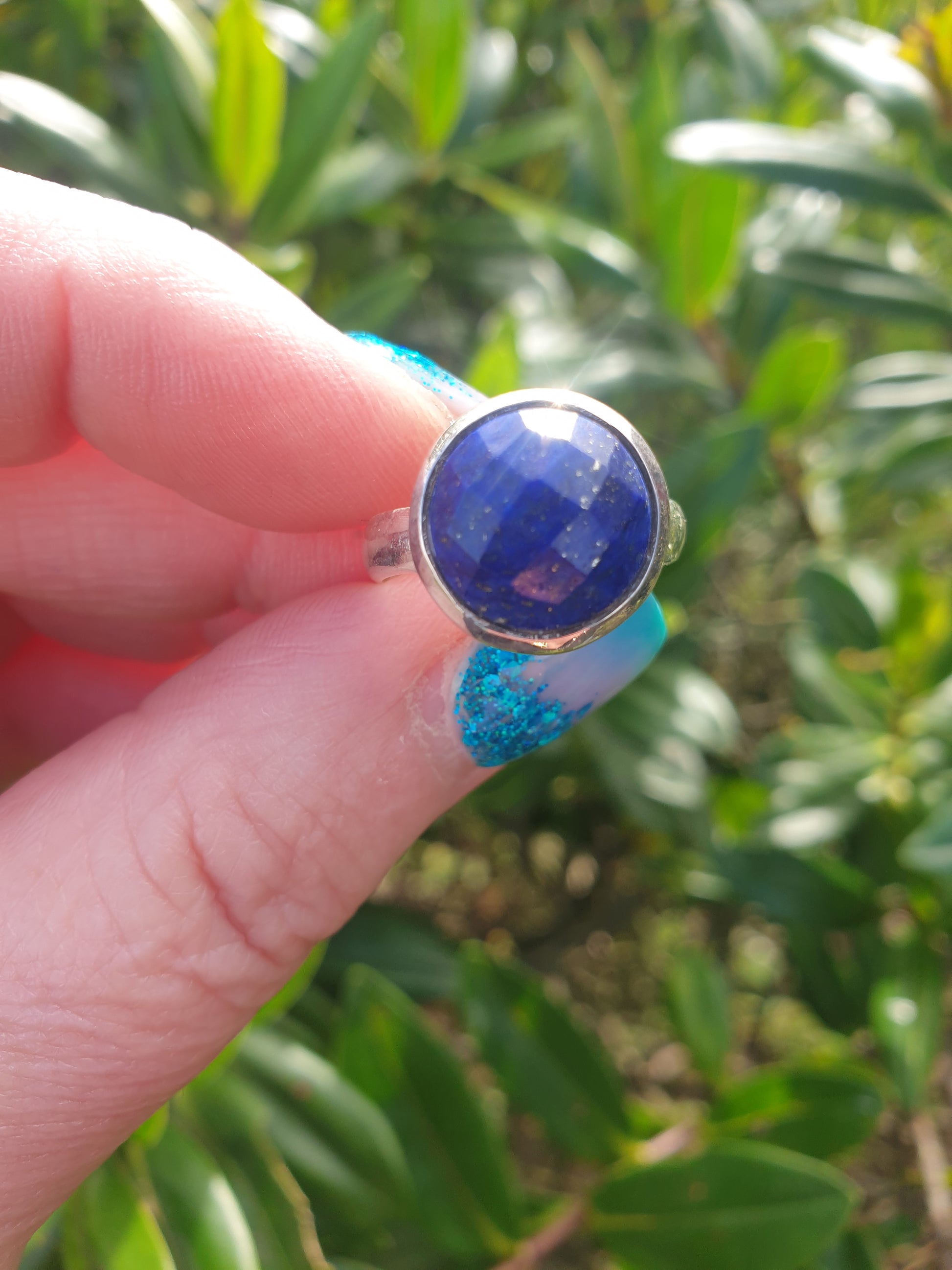 Lapis Lazuli | Rose Cut Sterling Silver Adjustable Ring