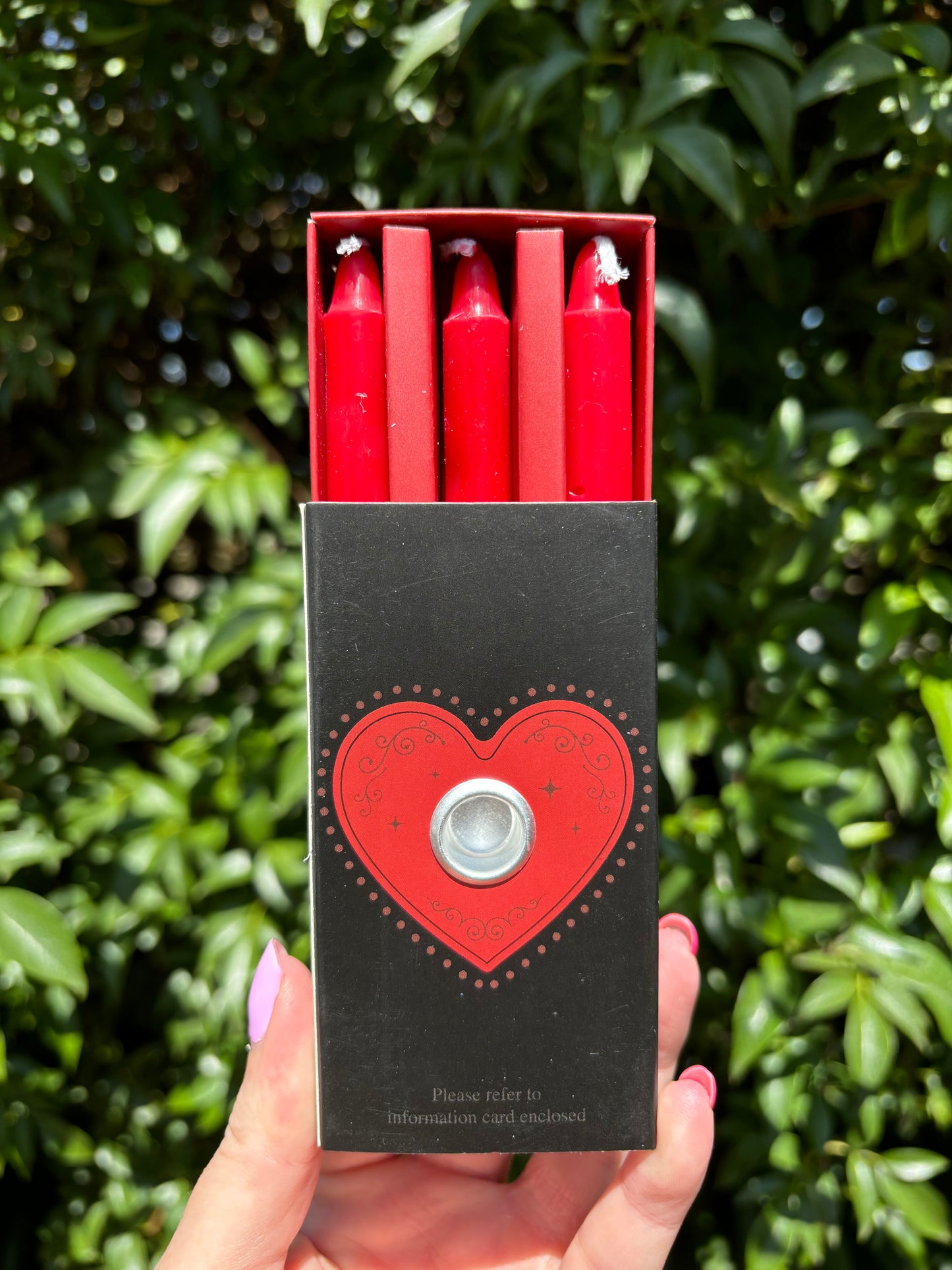 Attract love and strengthen your romantic relationships with this set of 3 love spell candles. Simply use the sliding matchbox to hold one of the included candles and focus on your intention. Includes 3 unscented spell candles and instructions. Approximate burn time of 1 hour per candle. Matches not included.