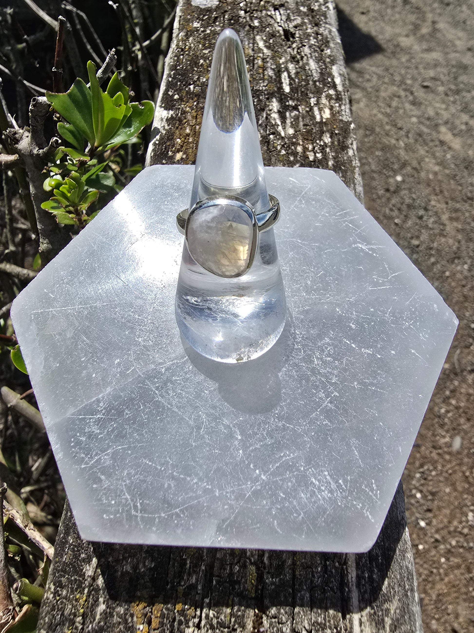 Rainbow Moonstone | Rose Cut Sterling SIlver Adjustable Ring C