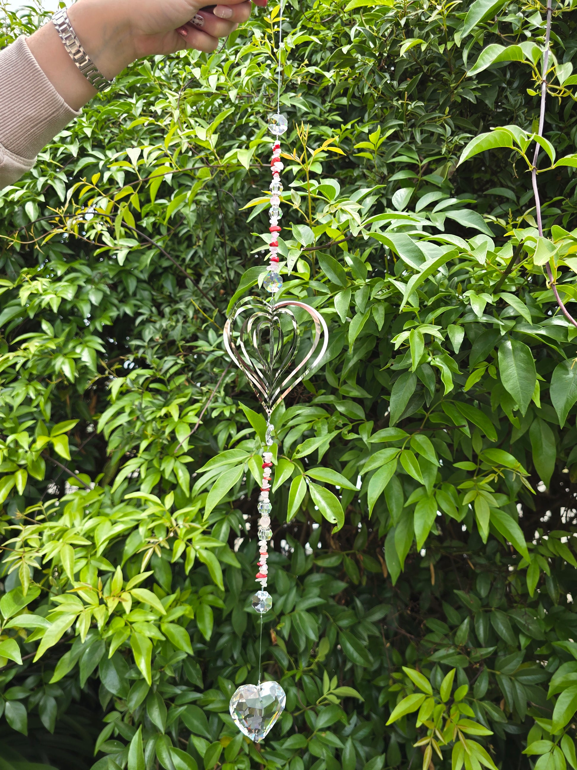 Heart Shaped Prism with Crystal Beads & Round Metal Heart Spinner