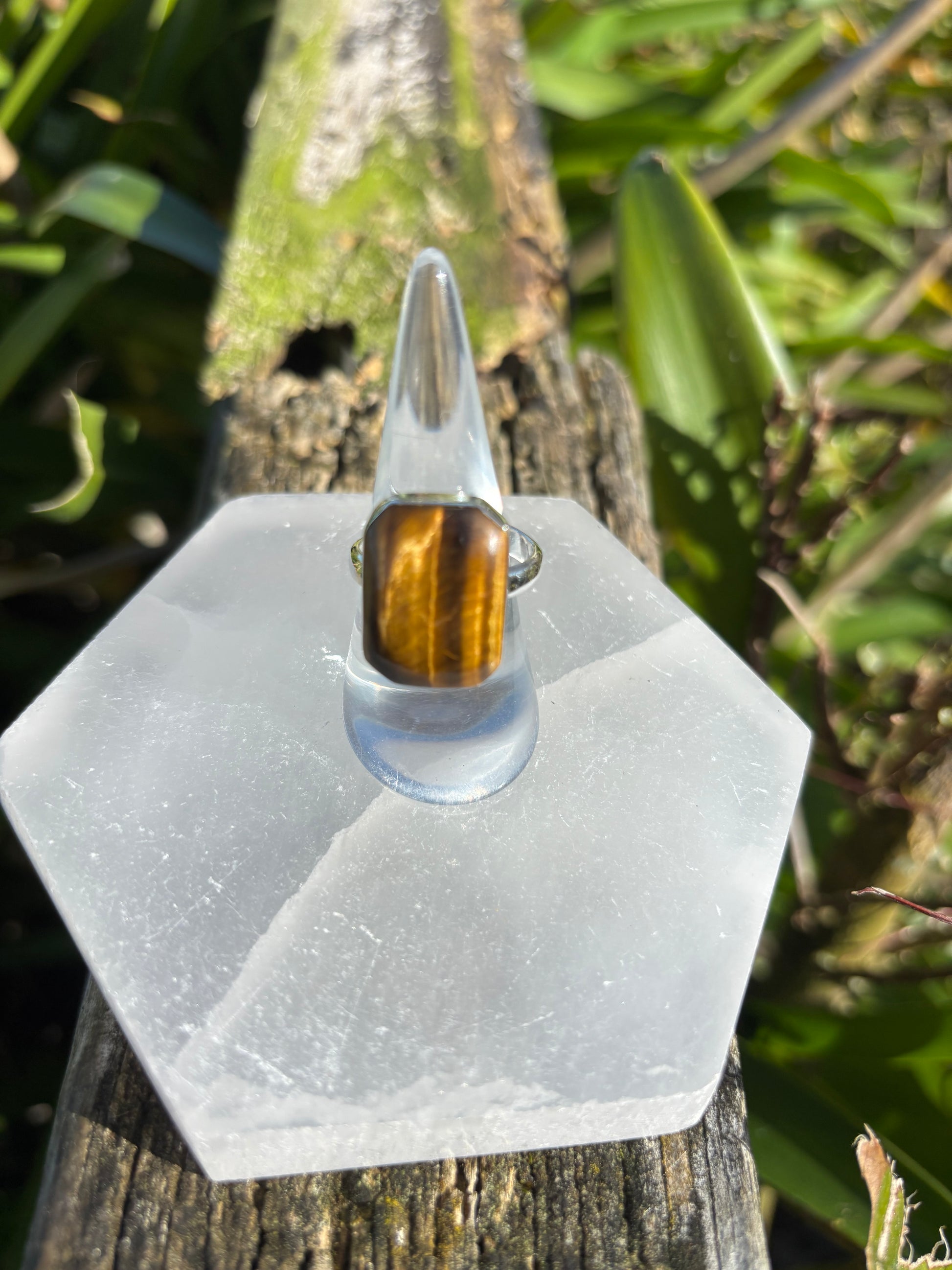 Tigers Eyes | Polished Cut Sterling Silver Adjustable Ring A