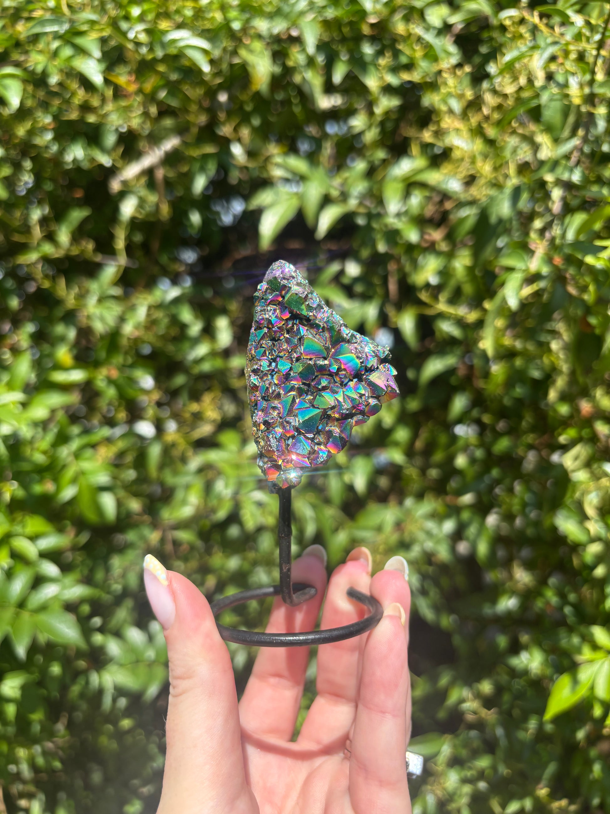 Titanium Aura Quartz Cluster On Metal Stand A