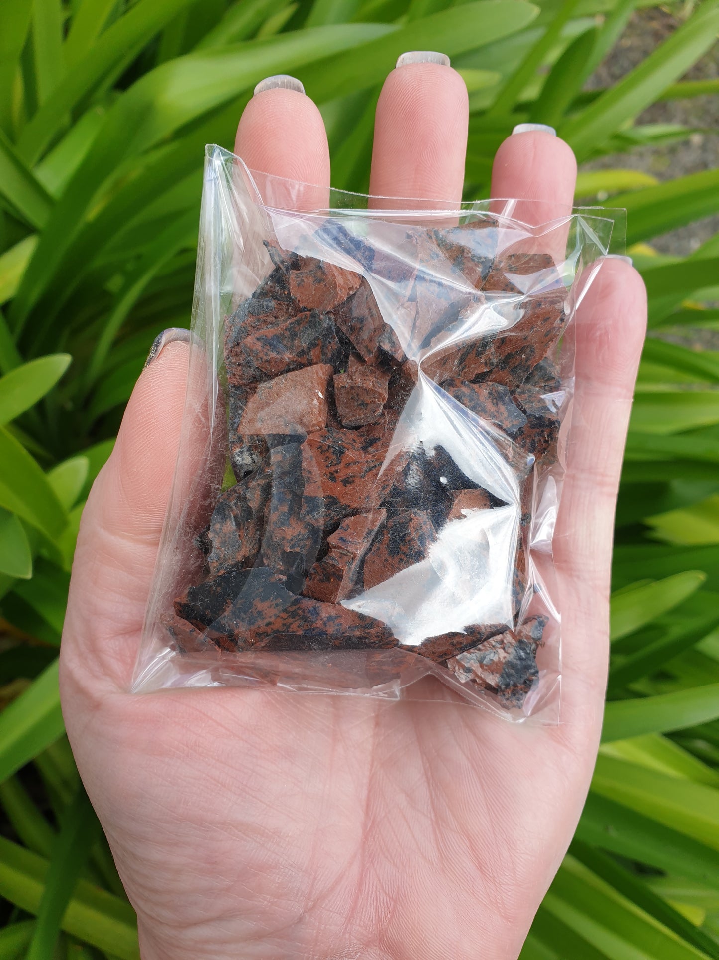 Bag of rough Mahogany Obsidian pieces. This is for ONE bag.
